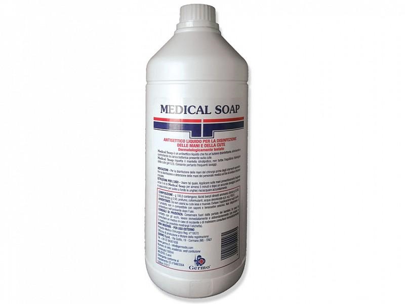 Medical Soap sapone disinfettante flacone 1 litro e un detergente disinfettante liquido studiato per l'igiene accurata delle mani e della cute. Il formato da 1 litro e particolarmente pratico per ambienti sanitari, professionali e assistenziali in cui e richiesta una detersione frequente. Consente un uso comodo e continuativo nelle normali procedure di igiene quotidiana.